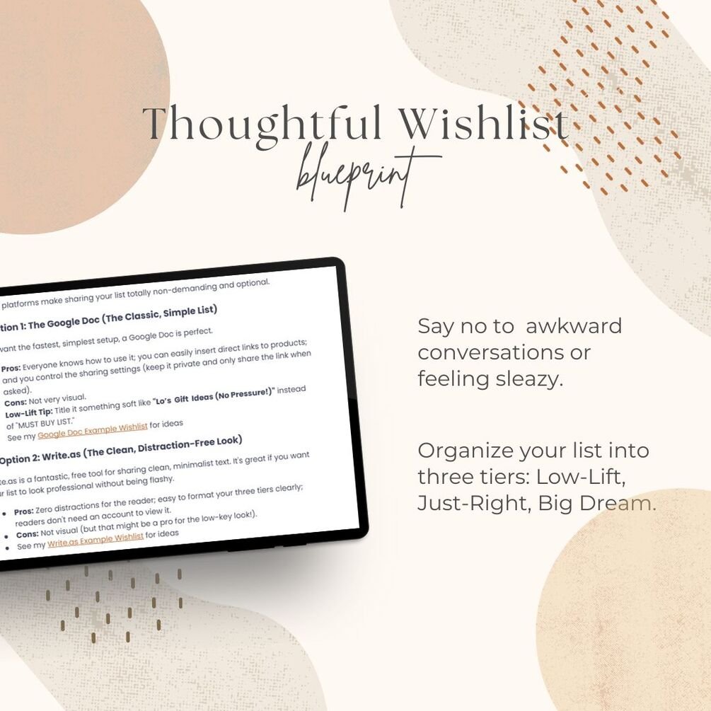 * The Three-Tiered Structure: Master the "Thoughtful Curation" Method for building a list that is a polite, stress-saving guide for your gift-givers.